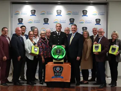 Thanks to a generous $30,000 grant from Enbridge Gas, each municipality in the County of Essex, plus the City of Windsor and Township of Pelee, is in the process of having a life-saving Automated External Defibrillator made permanently available outdoors – for public use at any time, on any day, year-round.